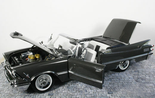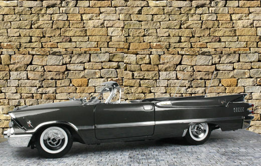 Das gezeigte Modell ist ein hochwertiges 1:18-Scale Nachbildung des Dodge Custom Royal Lancer Convertible und wurde von SunStar Platinum gefertigt. Es handelt sich um ein detailreiches Modell, das besonders durch seine sorgfältig gearbeiteten Details besticht. Die Materialien dieses Modells sind gemischt, was auf die Nutzung von Metall, Kunststoff und möglicherweise Gummi hinweist. In der Miniatur sind zahlreiche originalgetreue Details zu finden, darunter die feine Nachbildung des Motorraums, der Innenausstattung aus weißem und schwarzem Kunstleder und die exakt umgesetzten Chrom-Akzente an Front und Heck. Das Modellauto ist Teil der Sammlung von Modelly Mitglied "woodchuck" und stellt eine perfekte Replik dieses klassischen amerikanischen Automobils dar.