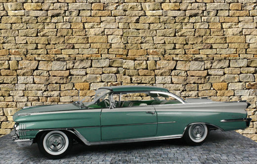 Dieses Meisterwerk im Maßstab 1:18 wird von Sunstar hergestellt und ist ein absolutes Muss für Modellauto-Sammler. Das Modell basiert auf Materialien gemischt aus Metall und Plastik, was eine beeindruckende Detailgenauigkeit und Langlebigkeit gewährleistet. Das Modell, das in der Sammlung des Modelly-Mitglieds "woodchuck" zu finden ist, besticht durch seine authentische Lackierung, die den einzigartigen Grün-Ton des Originals perfekt nachbildet. Jede chromfarbene Zierleiste und jede Kurve des Fahrzeugs ist präzise nachgebildet. Die Räder der Miniatur sind keine besonderen Nachrüstteile und somit wahrscheinlich originalgetreu wie das Serienfahrzeug gehalten. Das Modell zeigt mit seinem detaillierten Kühlergrill, den authentischen Radkappen und der formvollendeten Karosserie das handwerkliche Können von Sunstar. Einen besonderen Blickfang bildet das Interieur des Modells, das in zweifarbigen Grüntönen gehalten ist und so die Ästhetik der späten 1950er Jahre aufleben lässt. Die aufgemalten Anzeigen und Armaturenbrettelemente vermitteln einen lebensechten Eindruck des Cockpits eines Oldsmobile 98 der späten 50er.
