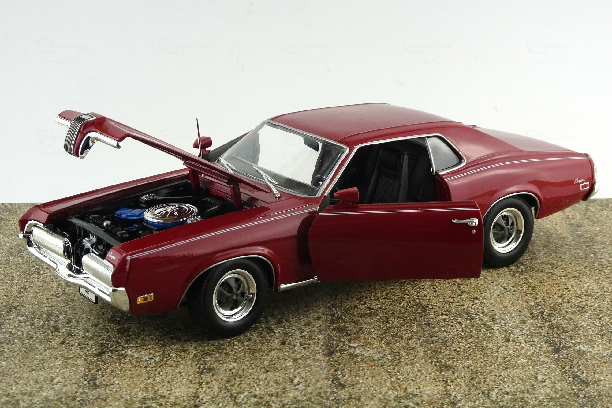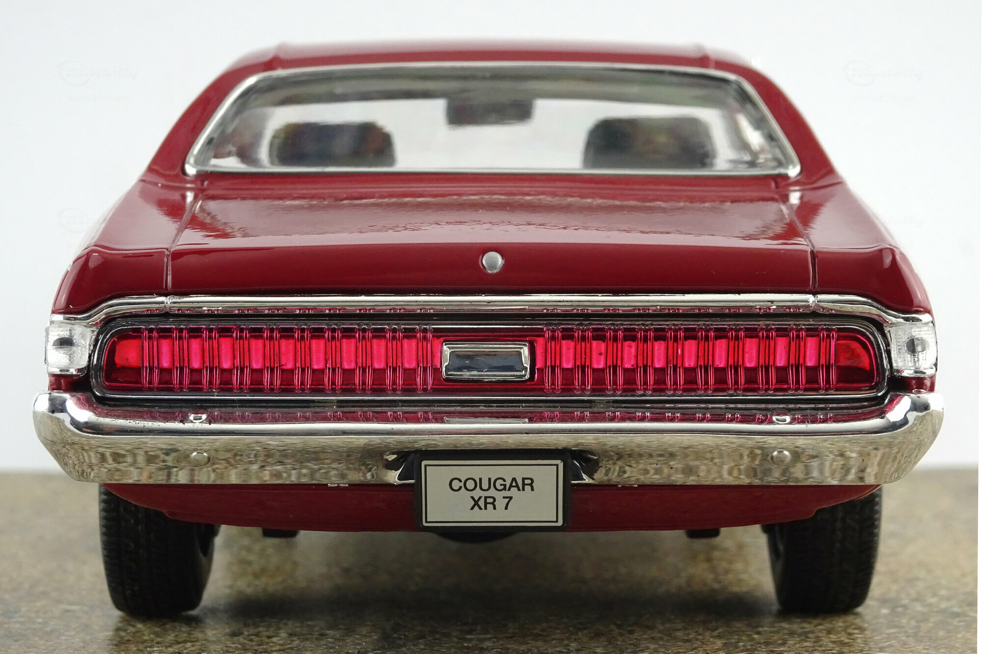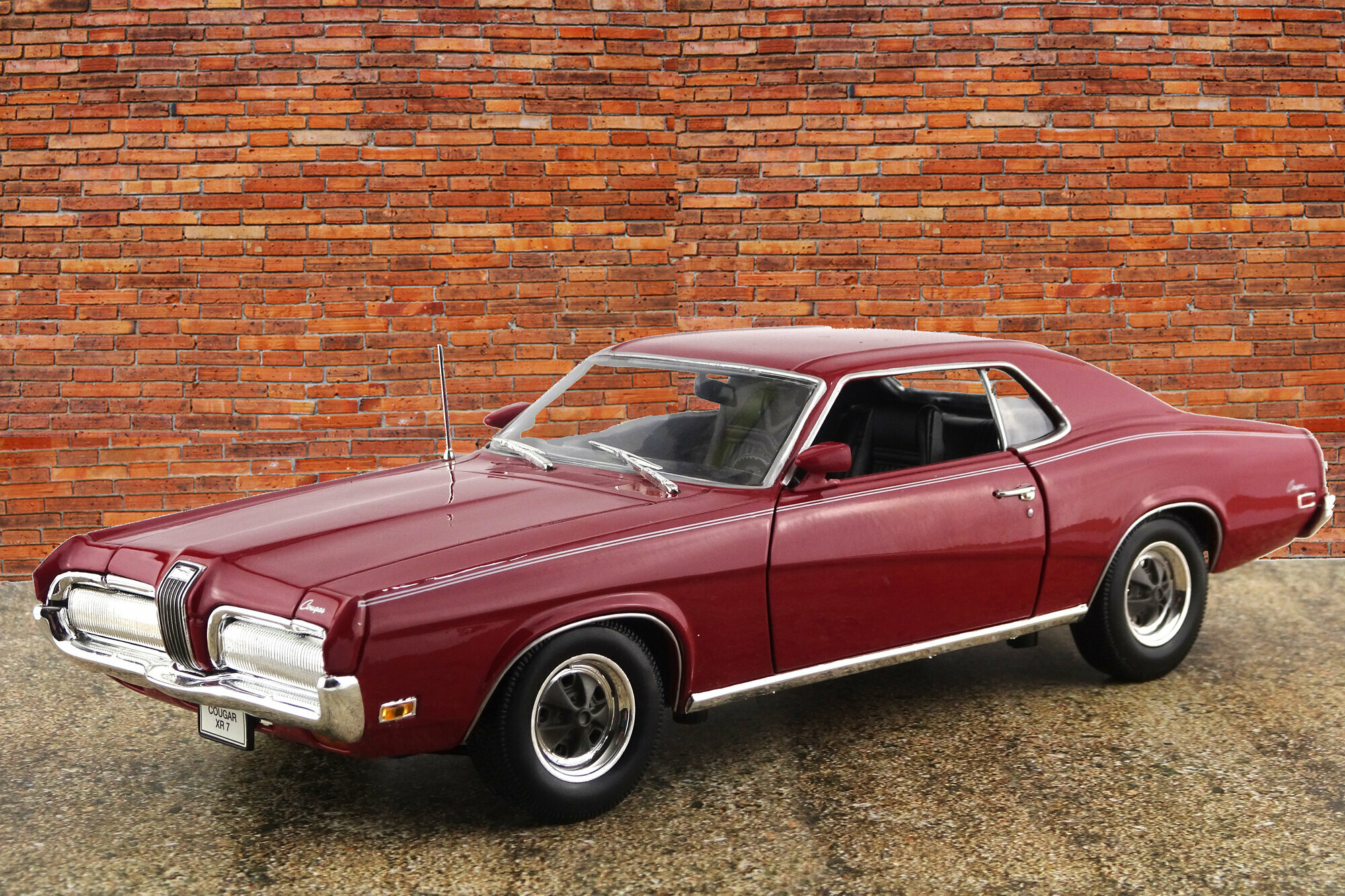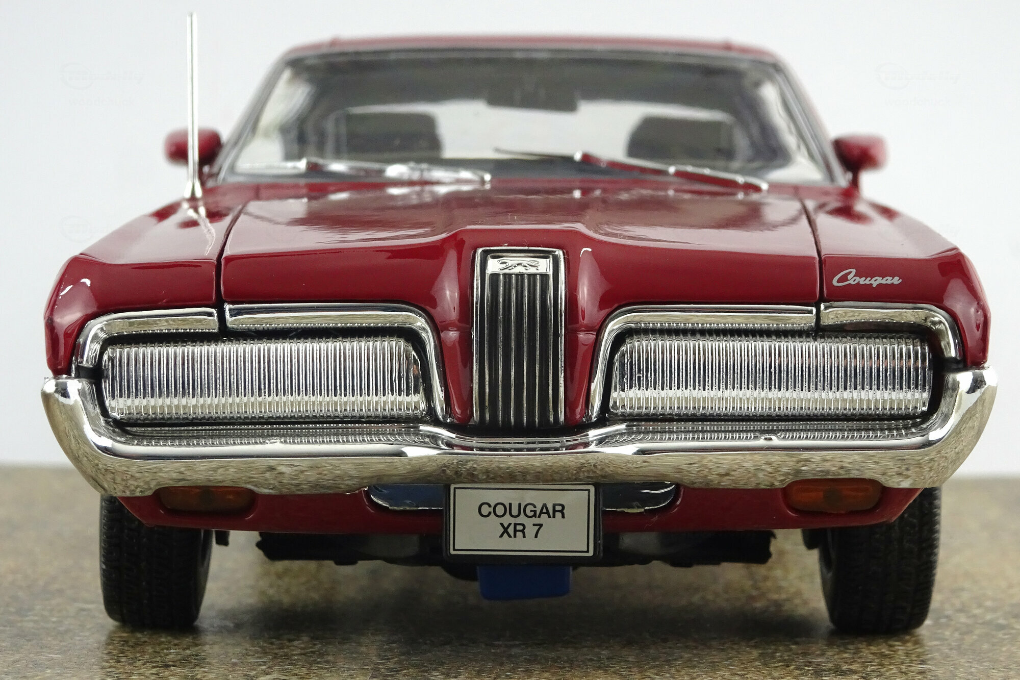 Welly brachte 2005 ein DieCast Modell des Cougar XR7 von 1970 als Hardtop Version heraus. Das Modell genügt hinsichtlich Qualität und Lackierung einem mittleren DieCast-Standard dieser Zeit trifft die allgemeine Erscheinung des Originals jedoch recht gut. Es zeigt durchaus viele äußere Details die jedoch, besonders im Front- und Heckbereich, etwas einfach gestaltet sind. Die Räder sind recht gut modelliert, wirken aber durch den einfärbten Kunststoff in der Mitte etwas unecht. Türen und Motorhaube lassen sich öffnen, die Vorderräder sind lenkbar. Der Motor und der Motorraum sind recht gut detailliert, auch wenn hier ebenfalls auf einfache Gestaltung zurückgegriffen wurde. Auch im Innenraum sitzt sich Dieses fort. Viele Details, jedoch einfach dargestellt. Der Maßstab wird sehr gut eingehalten. Alles in allem ein solides DieCast-Modell was seinen Preis von aktuell unter 40 € durchaus wert ist. Bei den derzeit angebotenen Modell handelt sich überwiegend um die Neuauflage von 2012 mit schwarzem Dach.