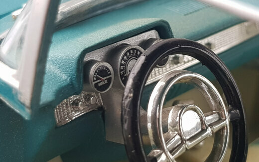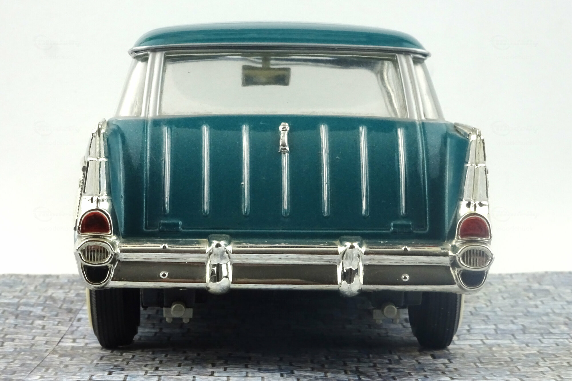YatMing brachte 1995 ein DieCast-Modell des Nomad von 1957 in mindestens 6 verschiedenen Zweifarb-Varianten heraus. Das Modell ist wie viele Yatming-Modelle dieser Zeit recht einfach gestaltet, jedoch ordentlich gearbeitet und lackiert wobei fraglich bleibt, ob es 57 bereits Metalliclack mit Glitzereffekt gab. Die äußeren Details sind ebenfalls recht ordentlich ausgeführt wenn auch Scheibenwischer, Rückleuchten, Räder sowie die Fenstereinfassungen sehr einfach ausgefallen sind. Es lassen sich beide Türen sowie die Motorhaube öffnen. Hier finden wir einen mit sehr einfachen Mitteln detaillierten Motor. Auch im Innenraum setzt sich dieses Niveau fort. Man hat auf einfachstem Wege versucht möglichst viele Details darzustellen, was jedoch einen eher billigen Gesamteindruck erzeugt und eher in die Kategorie Spielzeug gehört, ein übriges tun hier auch die unrealistischen Türaufhängungen. Der Maßstab wird wiederum recht gut eingehalten und auch die Proportionen sind weitgehend stimmig. Ein für diese Zeit typisches Modell welches irgendwo zwischen Spielzeug und Schreibtischschmuck angesiedelt war und zu einem sehr günstigen Preis ( um die 35 DM) angeboten wurde. Es wird nicht mehr gefertigt und im Netz mit OVP zu Preisen um die 50 € angeboten.