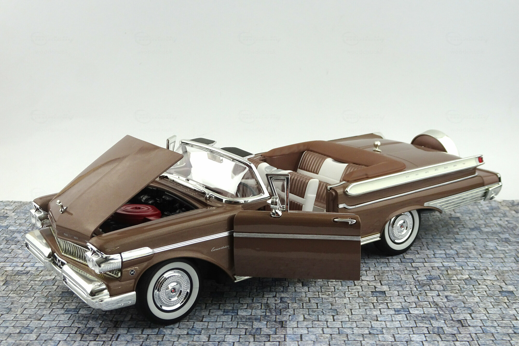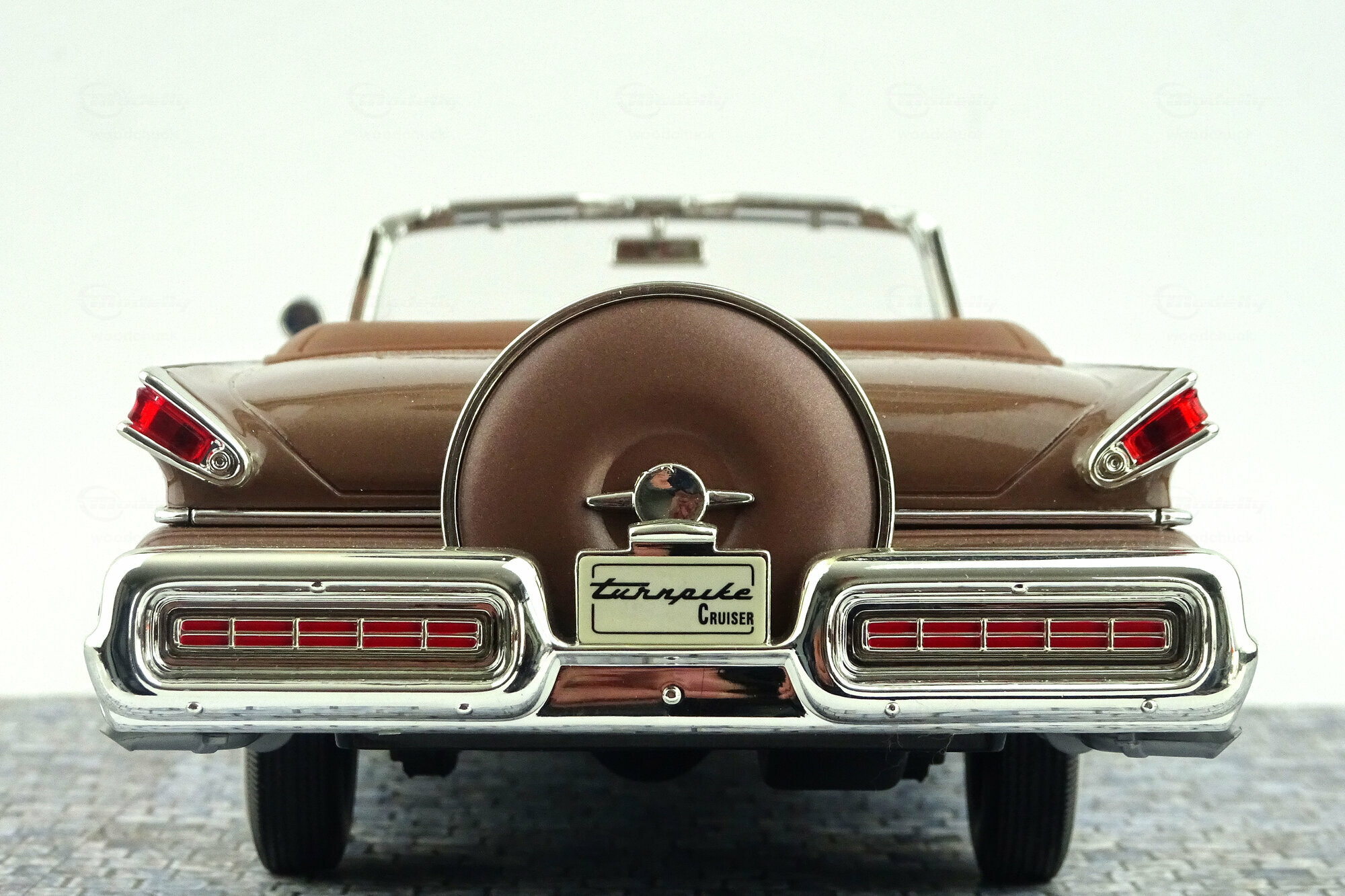 In seiner Road Signature Reihe brache Yatming zwischen 2004 und 2008 ein DieCast-Modell des Turnpike Cruiser Convertible von 1957 in 5 Farbvarianten heraus. Das Modell entspricht des üblichen Yatming-Standard bei welchem die Linien des Originals recht gut getroffen werden, Ausnahme hier ist die Panoramafrontscheibe deren Neigung leicht gewölbt nachgebildet ist. Weiterhin ist das Modell mit dem damals beliebten „Continental Kit“ ausgestattet, einer Einrichtung bei welcher das Reserverad extern in einem eigenen Behälter aus der nach hinten verlängerten und verkleideten Stoßstange untergebracht ist. Die äußeren Details sind, wie von Yatming gewohnt, zwar vollzälig aber etwas grob ausgefallen. Räder und Unterboden erwartungsgemäß eher einfach. Es lassen sich beide Türen sowie die Motorhaube öffnen. Unter dieser ist ein mittelmäßig detaillierter und farblich akzentuierter V8 zu sehen. Auch der Innenraum ist mit eher einfachen und überwiegend groben Details versehen was bei einem Cabrio immer recht schade ist. Abgesehen, daß das Modell etwa 3-4 mm zu schmal ist, wird der Maßstab gut eingehalten. Ein ordentliches Modell dieses „Straßenkreuzers“ aus den späten 50ziger welches aktuell nicht mehr gefertigt wird und im Netz um die 60 € angeboten wird.