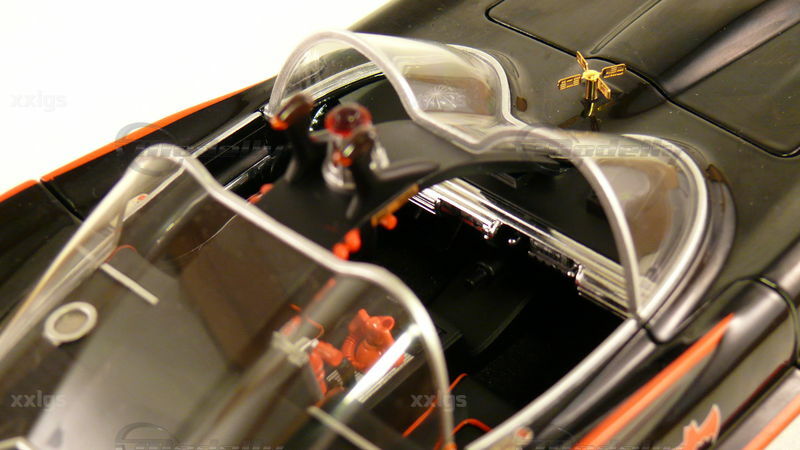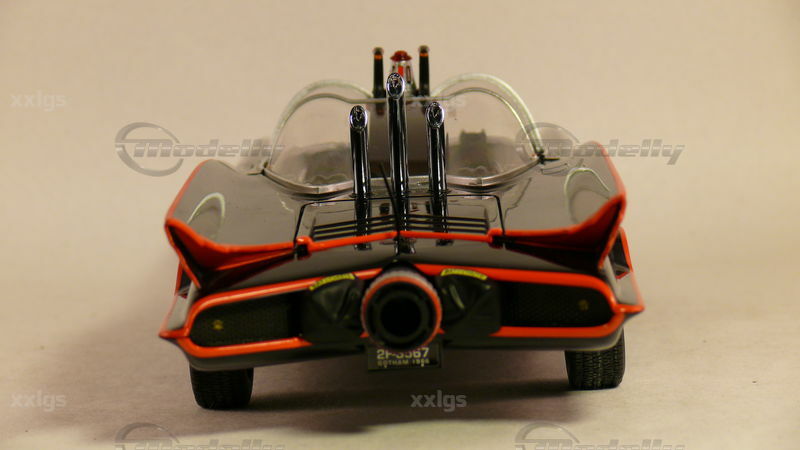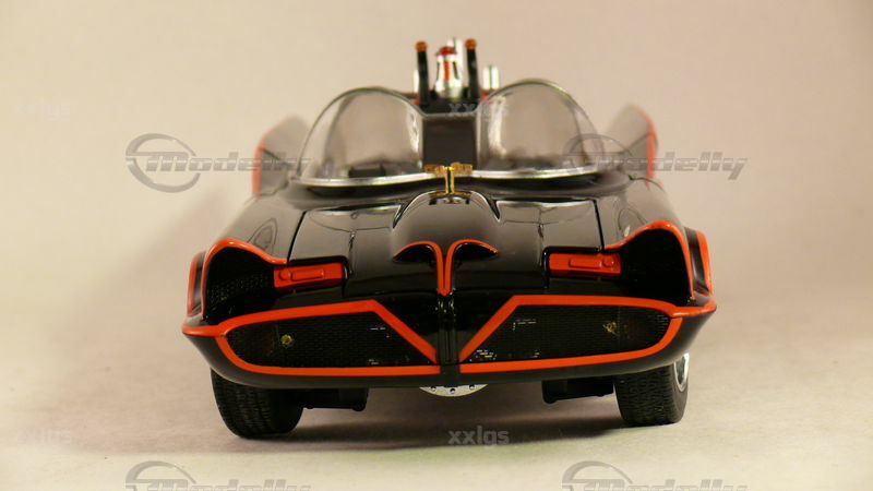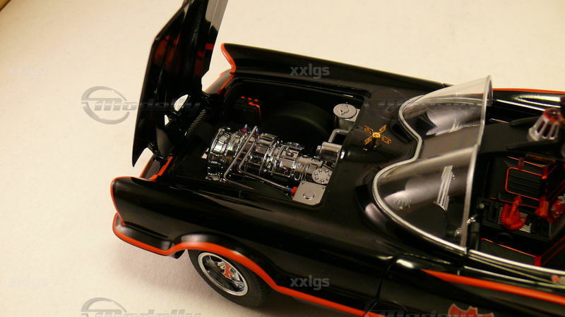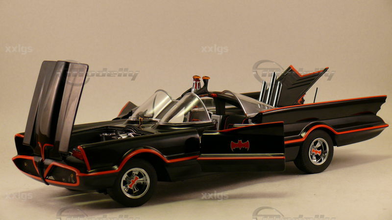 Bei dem hier gezeigten Modell handelt es sich um einen 1:18 Scale-Nachbau eines der bekanntesten Autos der Fernsehgeschichte, dem Batmobil. Das Miniaturmodell ist ein Sammlerstück und wird von Hot Wheels Elite hergestellt. Das Modell ist aus Diecast gefertigt, was ihm eine sehr robuste und authentische Ausstrahlung verleiht. Die Details des Fahrzeugs sind sehr präzise nachgebildet, darunter die charakteristischen roten Zierlinien entlang der Karosserie und das Bat-Logo auf den Türen und der Motorhaube. Auch die markanten Doppel-Dome-Frontscheiben und die Antennen auf dem Fahrzeugheck sind dem Original hervorragend nachempfunden. Der Miniatur-Sammler "xxlgs" hat dieses Modell in seine Sammlung aufgenommen, was seine Bedeutung unterstreicht.