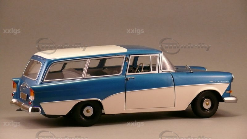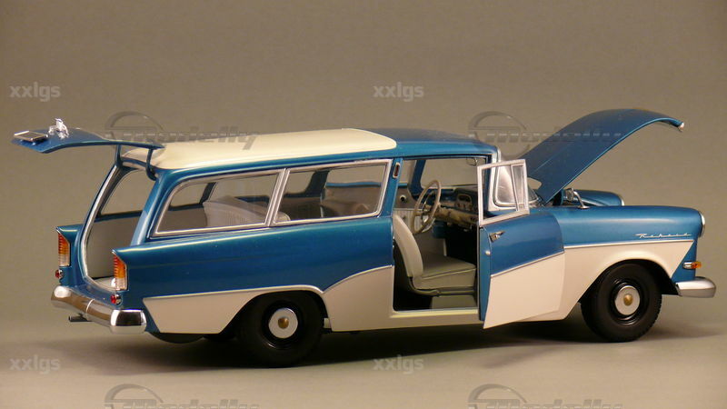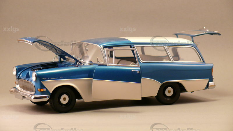 Das hier vorgestellte Modellauto im Maßstab 1:18, hergestellt von Minichamps, ist eine hochwertige Nachbildung des Opel Rekord P1 CarAVan und besticht durch seine Detailtreue. Speziell gemischte Materialien wurden verwendet, um eine möglichst authentische Darstellung des Originals zu erreichen. Der hier gezeigte Modellwagen gehört zur Sammlung von Modelly-Mitglied "xxlgs". Das Modell zeigt den Opel Rekord P1 CarAVan in einer zweifarbigen Lackierung, die die authentische Farbwahl des Originals widerspiegelt. Die Hauptfarbe ist ein kräftiges Blau, während das Dach und die unteren Karosseriebereiche in Weiß gehalten sind, was dem Modell einen klassischen Look verleiht.