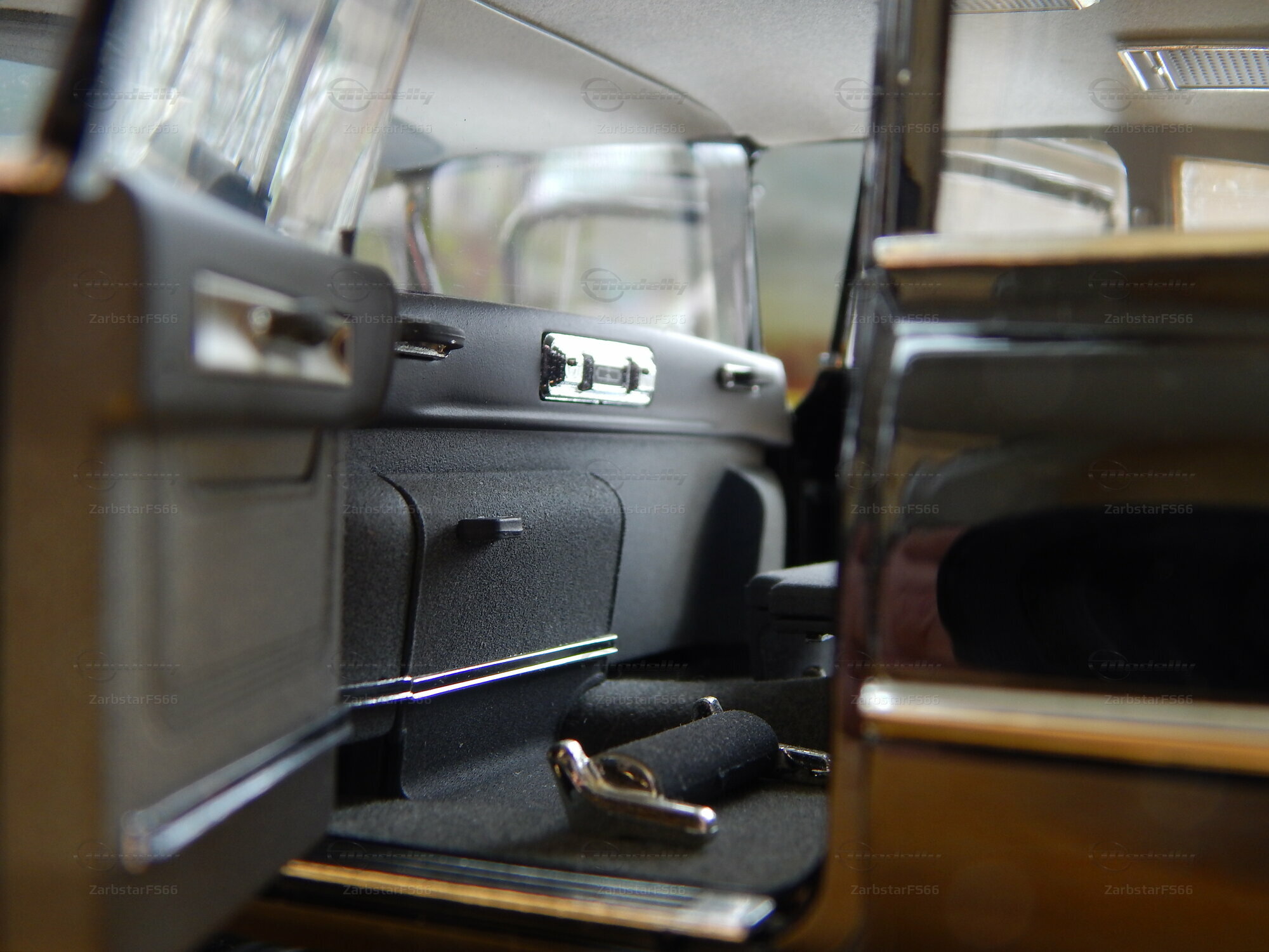 Das Modellauto von Precision Miniatures im Maßstab 1:18 ist eine detaillierte und authentische Nachbildung des Originals. Dieses Sammlerstück von Modelly-Mitglied "ZarbstarFS66" besteht aus einer Mischmaterialbasis, die den Detailgrad und die Genauigkeit des Modells betont. Es zeigt die ikonischen Merkmale des Cadillac Series 75 Fleetwood, wie zum Beispiel die imposanten Heckflossen, die verchromten Stoßstangen und die repräsentative Frontpartie. Die schwarzen Lackierungen mit den präzisen Konturen und die gezielte Nachbildung der Innenausstattung machen das Modell zu einem Highlight in jeder Sammlung.