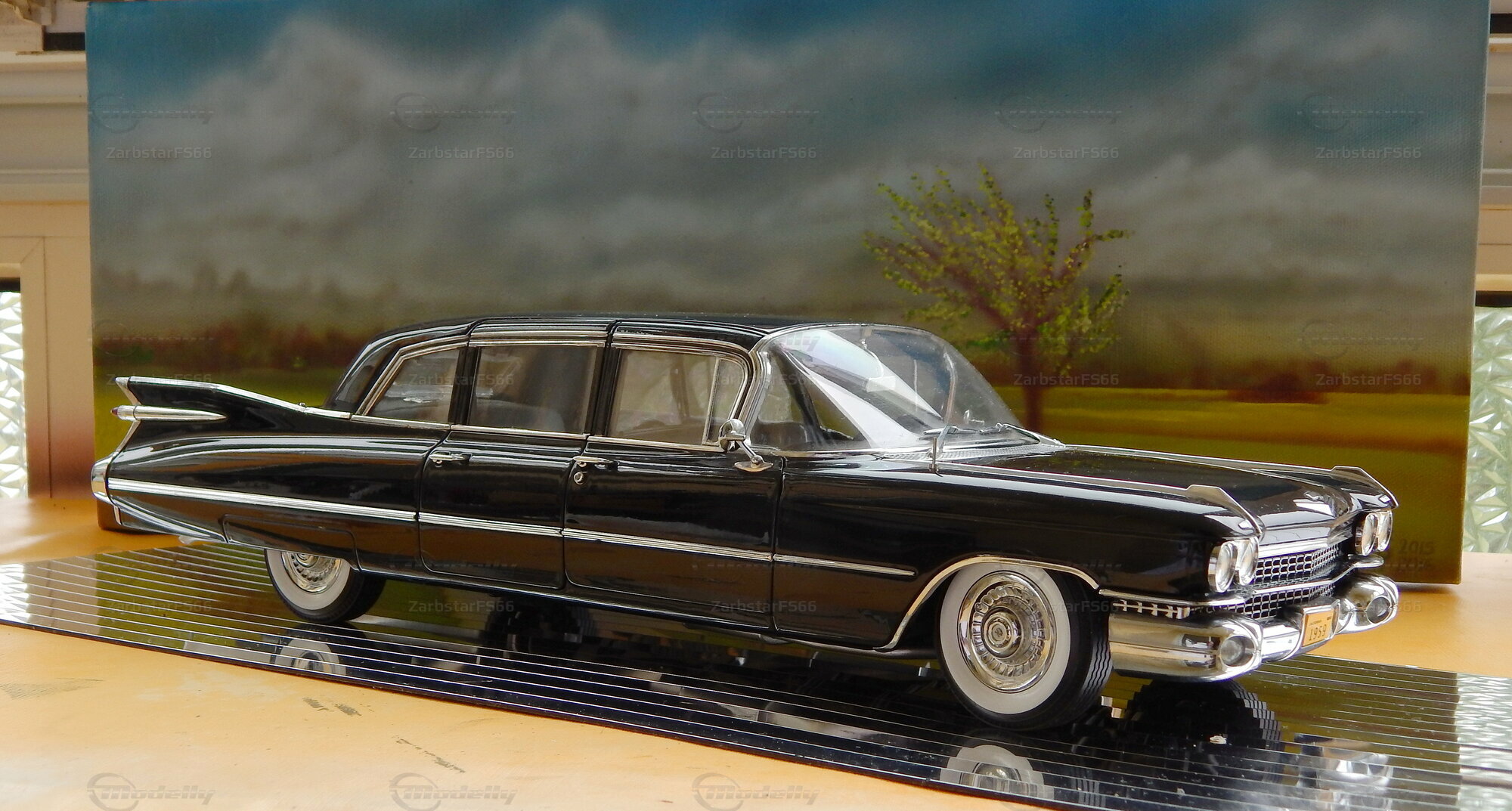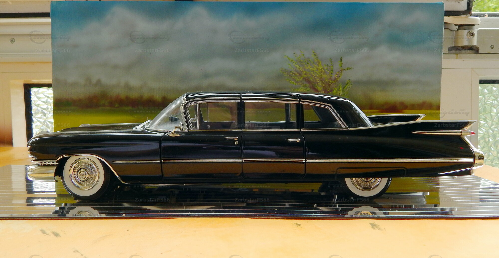 Der Cadillac Series 75 Fleetwood, wie er auf den Bildern der 1:18 Modellversion von Precision Miniatures zu sehen ist, gehört zu den bemerkenswertesten Luxusfahrzeugen seiner Zeit. Das Originalmodell, das in der neunten Generation von 1959 bis 1960 produziert wurde, war Ausdruck von Reichtum und Prestige. Diese Fahrzeuge zeichneten sich durch ihr markantes Design und hohes technisches Niveau aus. Die opulente Karosserie, die besonders durch ihre Flossen und verchromten Akzente bestach, unterstrich den luxuriösen Charakter des Fahrzeugs.