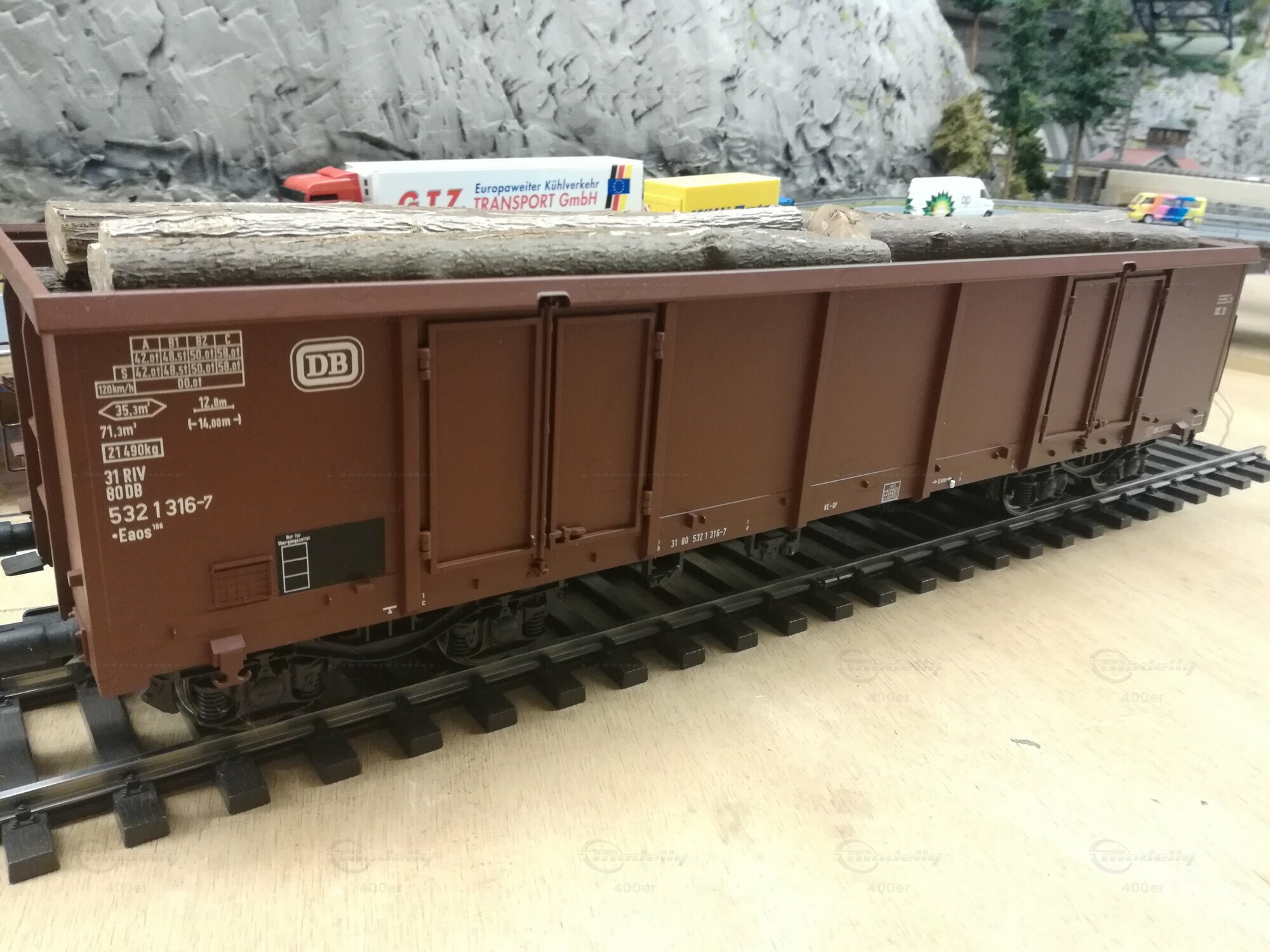 4-achsiger Hochbordwagen der DB, Stammholz-Ladung Eigenbau
