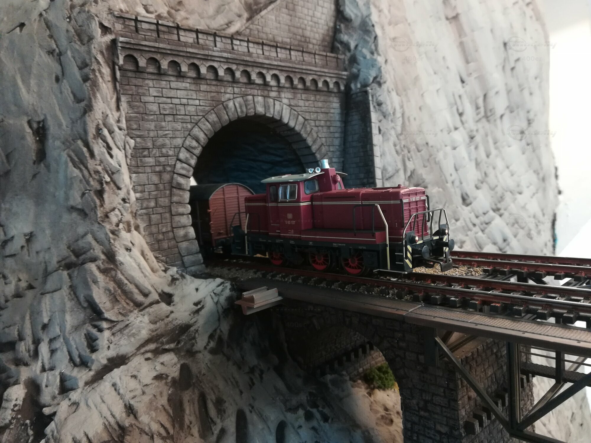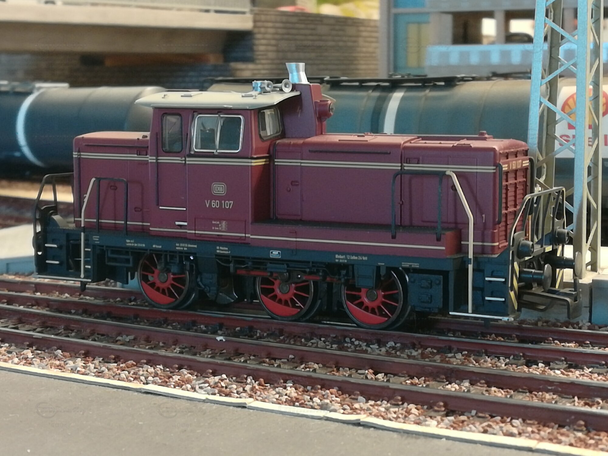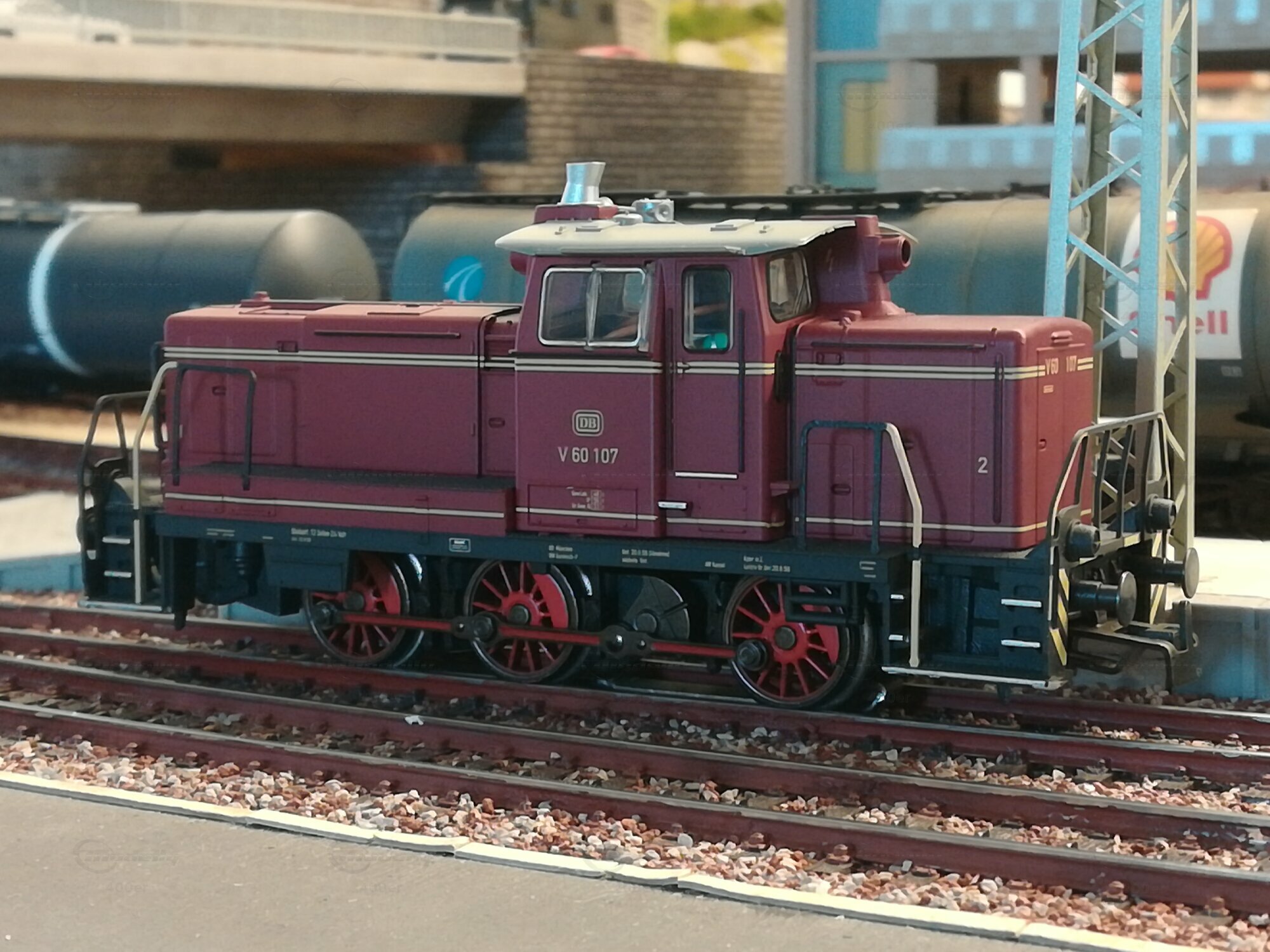 Kleine Rangierlokomotive, verfügt über geregelten Hochleistungsantrieb, Digital-Decoder und ferngesteuerte Telex-Kupplungen vorn und hinten