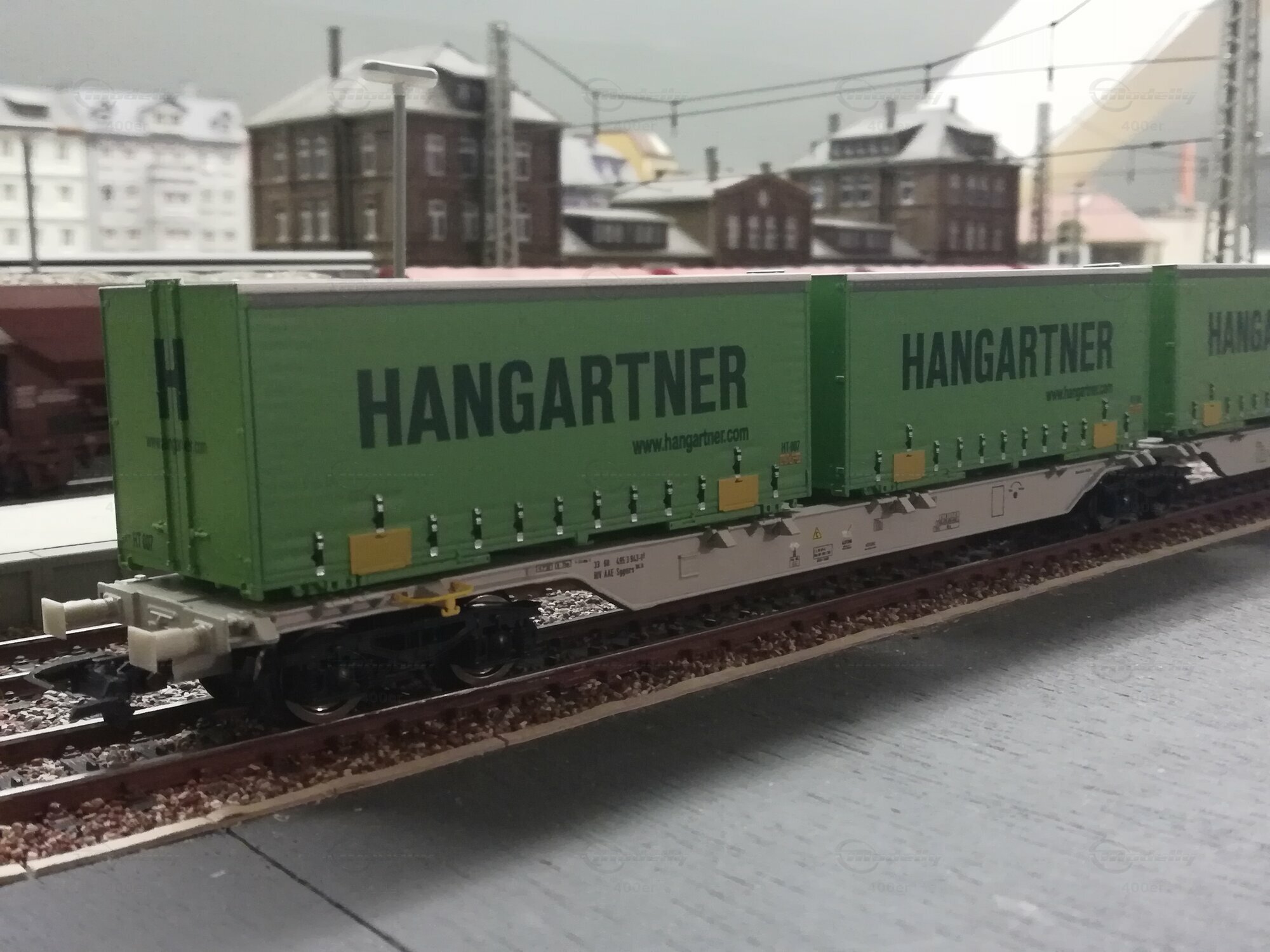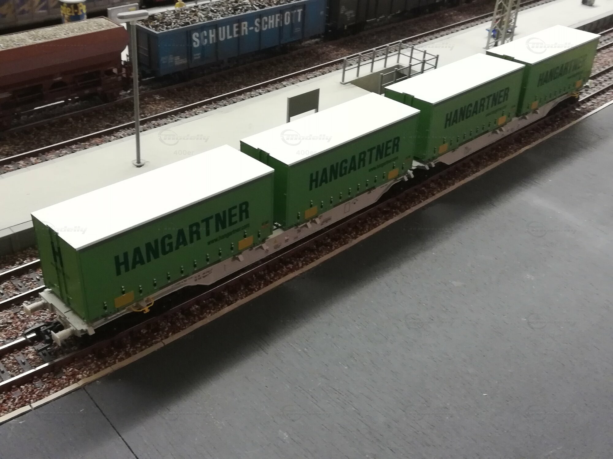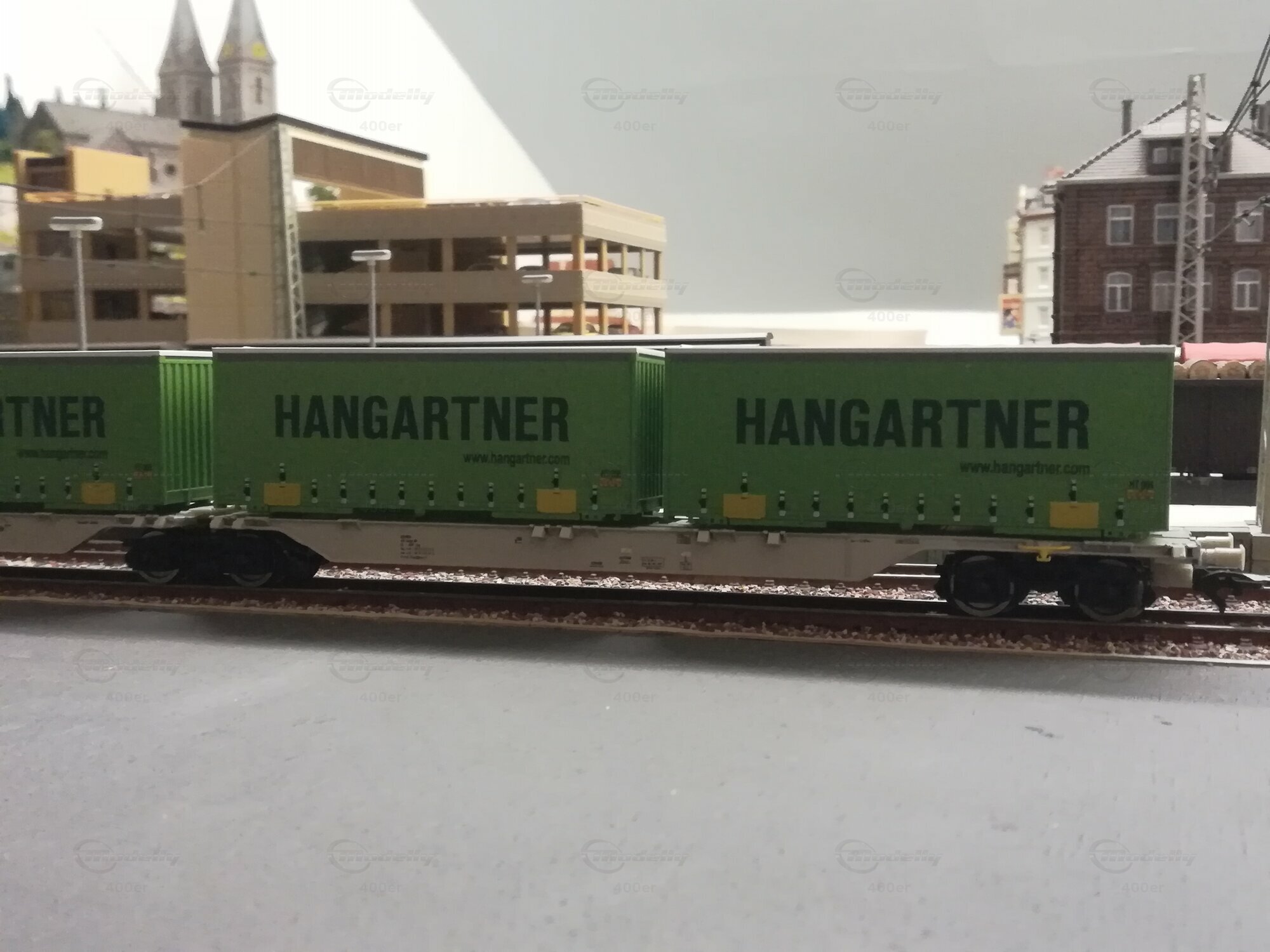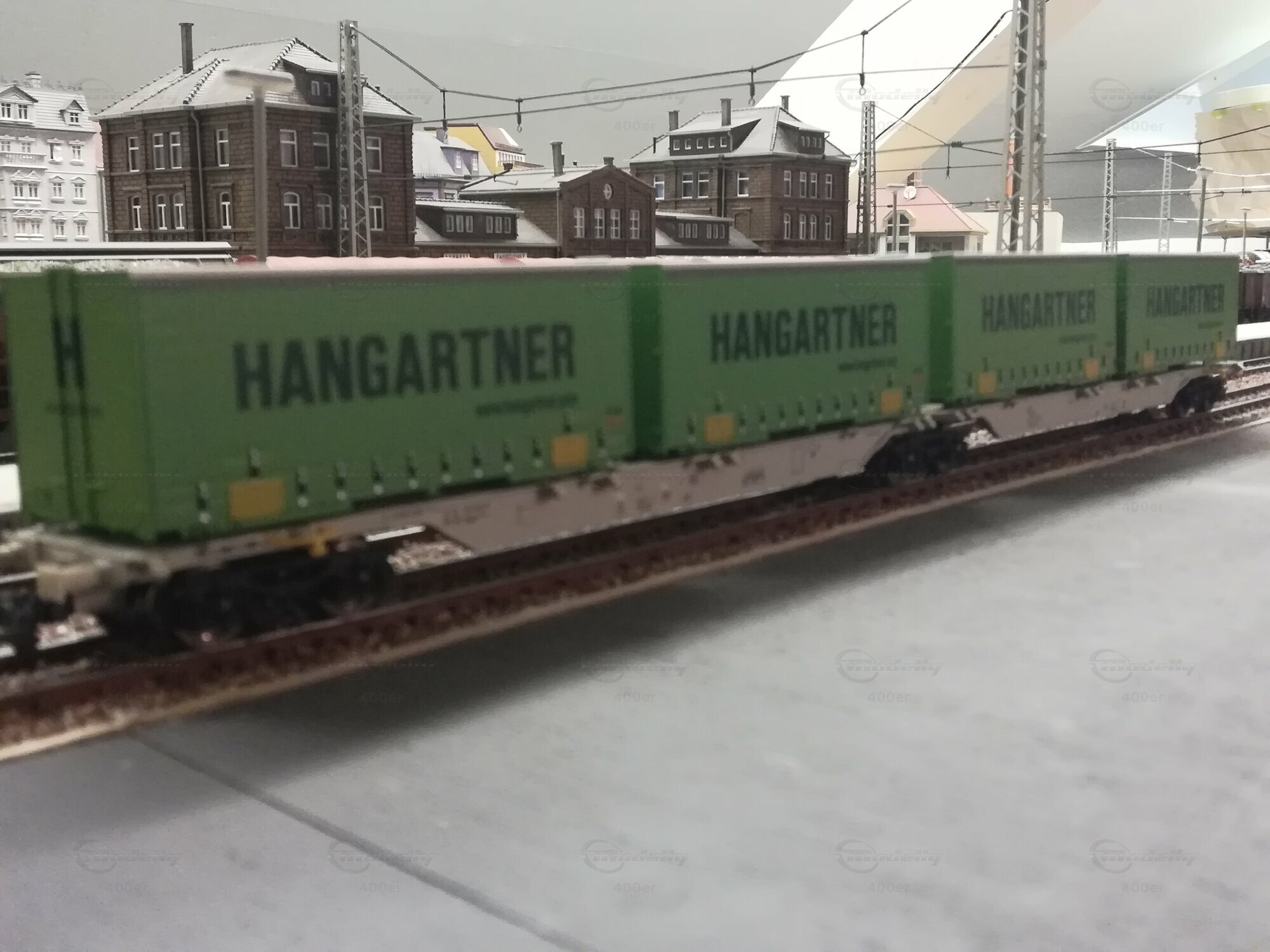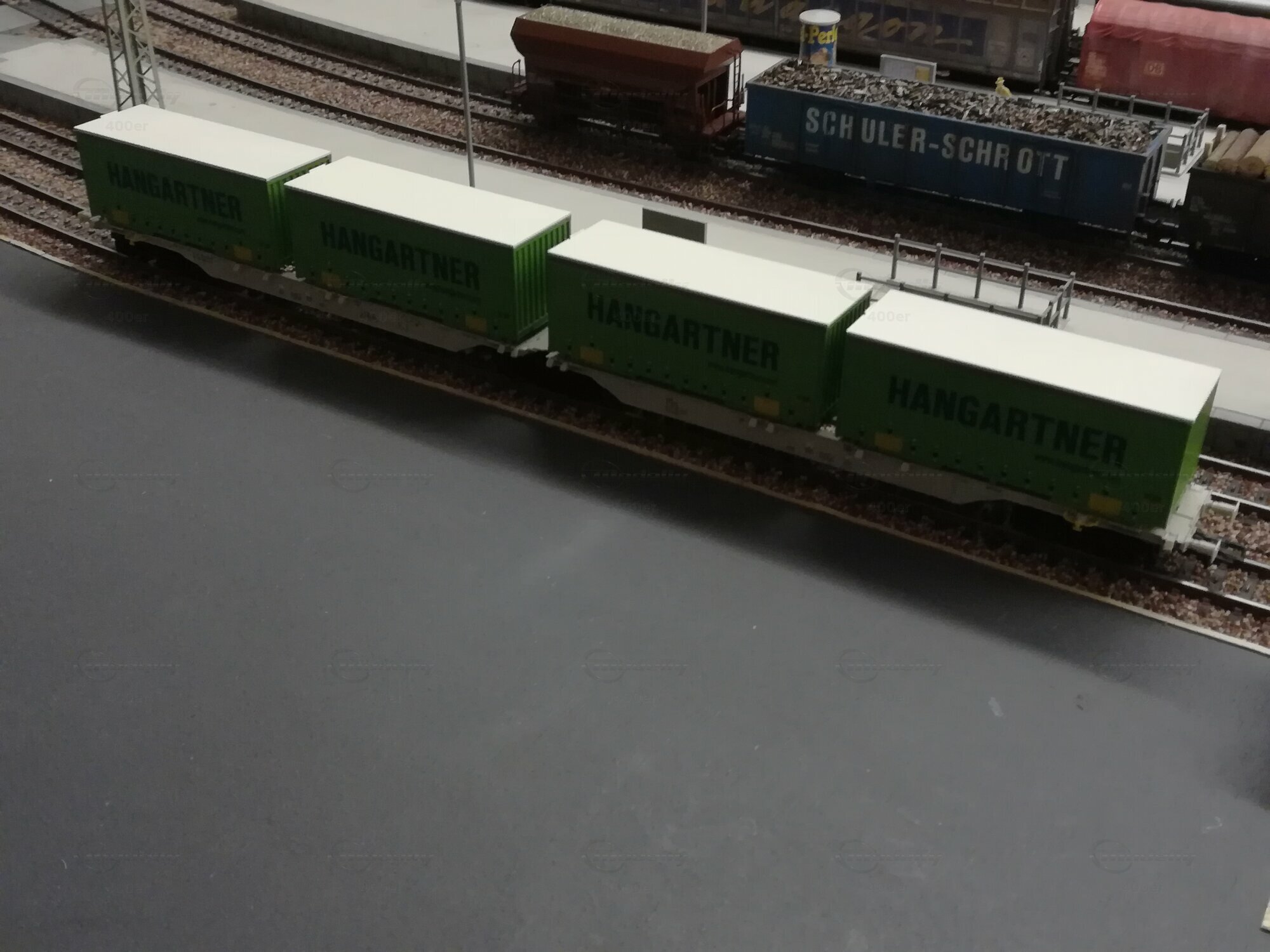 Doppeltragwagen der AEE Cargo AG/CH, beladen mit Wechselbrücken der Fa. Hangartner aus AAarau/CH