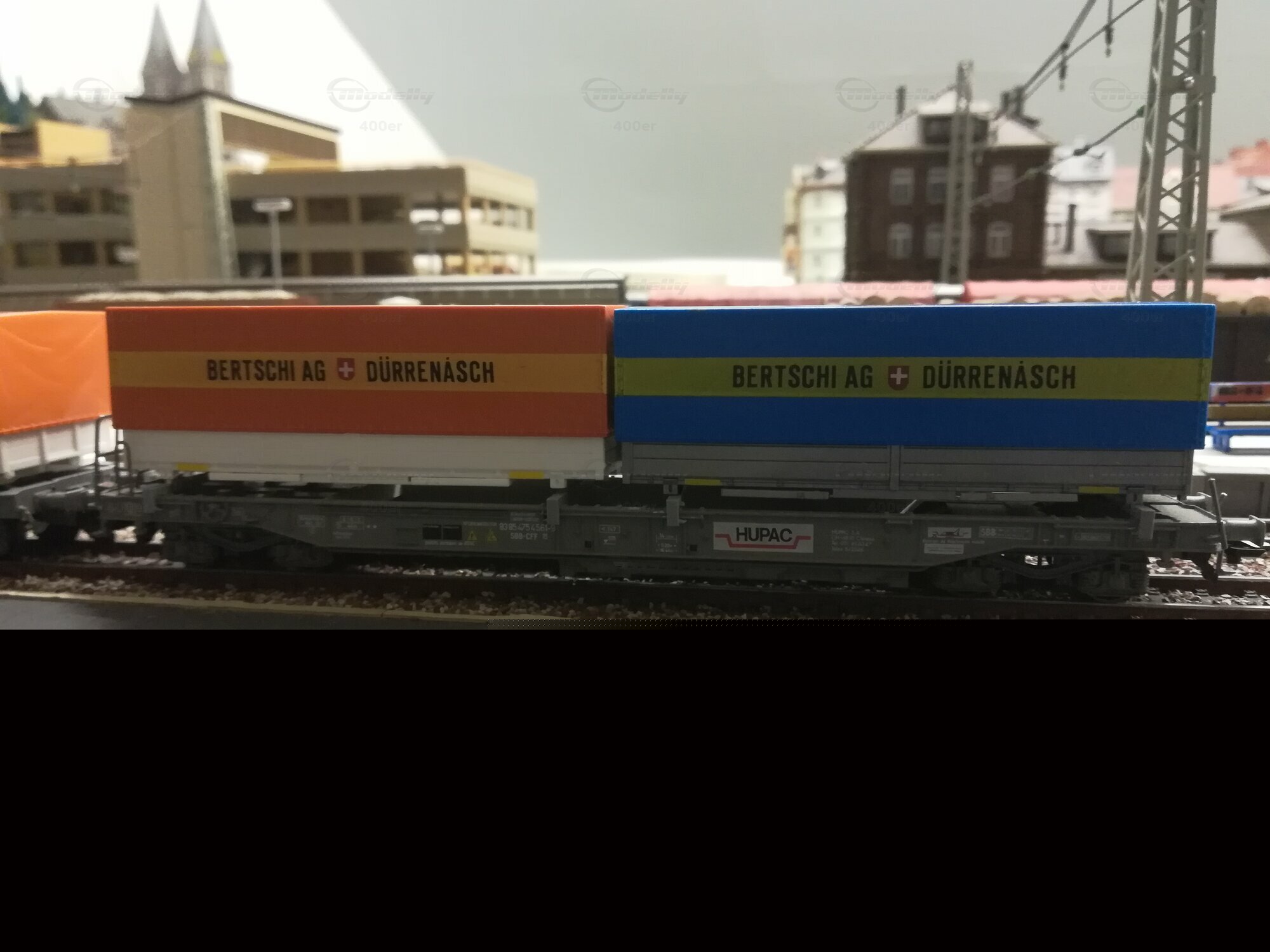 Trotz ähnlicher Wechselbrückenladung handelt es sich bei den Fotos um unterschiedliche Waggons.